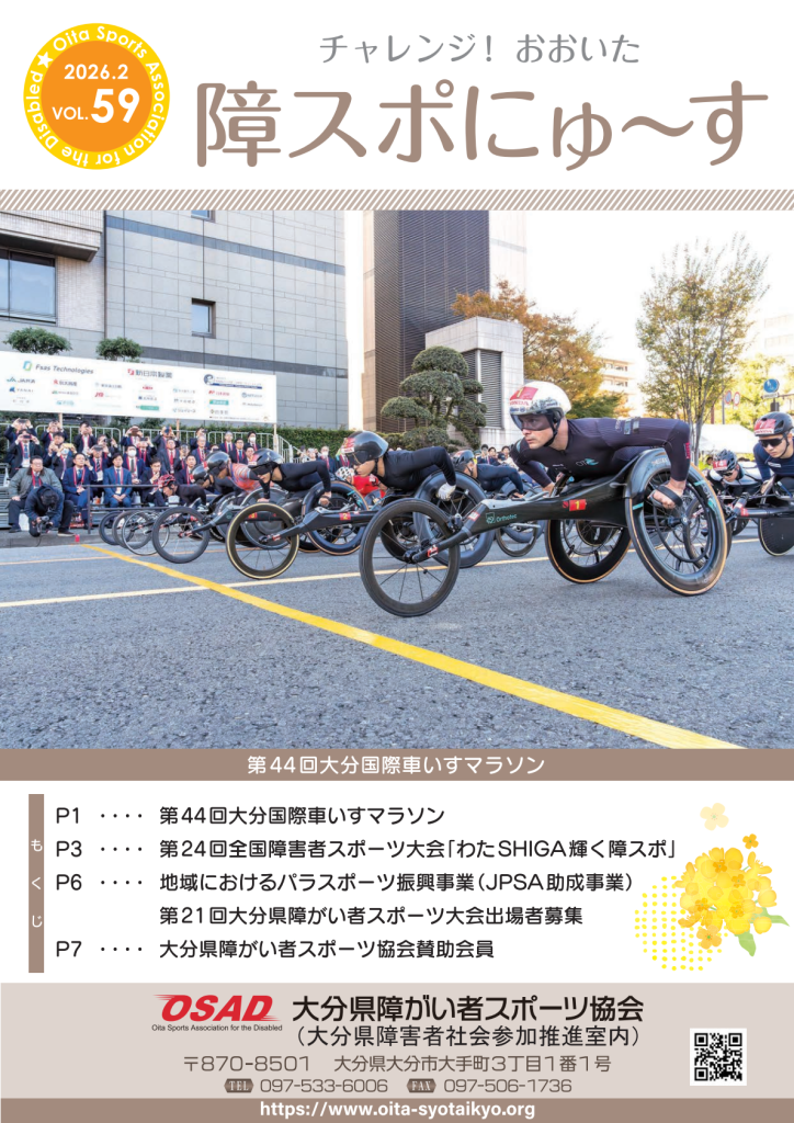 障がい者スポーツの裾野が一層広がるよう、大分国際車いすマラソンのみならず、障がいのある方もない方も共に地域でスポーツを親しみ、楽しめる環境づくりの推進、さらには未来を担う若手アスリートの育成支援など、将来を見据えた取組等も積極的に推進していきたいと考えています。